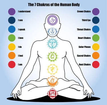 Abaixo está uma indicação de cada chakra e as energias associadas.